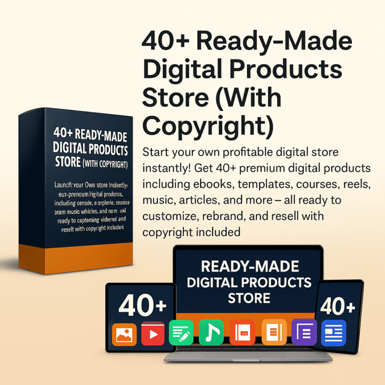 Start your own profitable digital store instantly! Get 40+ premium digital products including ebooks, templates, courses, reels, music, articles, and more – all ready to customize, rebrand, and resell with copyright included.